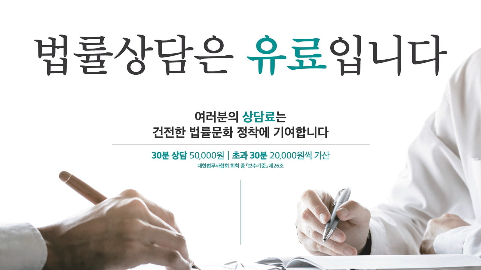 제26조(상담료) ① 의뢰인과의 대면이나 전화 등에 의한 개별적 상담료는 소요시간 30분까지는 50,000원 이하로 하고, 30분을 초과하는 매 30분마다 20,000원을 가산한다. 이 경우에 30분미만은 30분으로 본다. 다만, 사건의 수임이 따르는 경우에는 상담료를 면제할 수 있다.